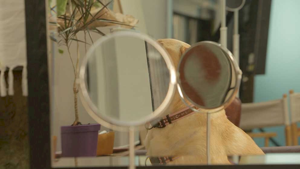We see the labrador Sally assume a series of poses as a model in a photography studio. As the camera records the scene on the set, which is both amusing and surprising (full of complex power relationships), we hear offscreen conversations amongst the men in the crew. Thanks to these exchanges, ‘the animal’ unexpectedly takes on attributes of ‘the woman’.