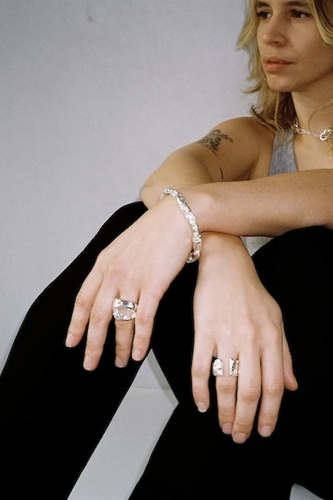 Bluets is Anne Ballon, a certified goldsmith creating bold, gender-neutral silver jewelry with a playful twist.