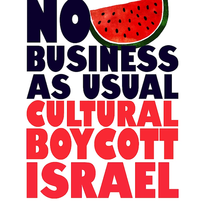 Met onmiddellijke ingang, en in navolging van aanhoudende oproepen van Palestijnse kunstenaars en de Palestijnse samenleving, stellen wij een culturele boycot in van de Israëlische staat en van alle Israëlische instellingen en bedrijven.